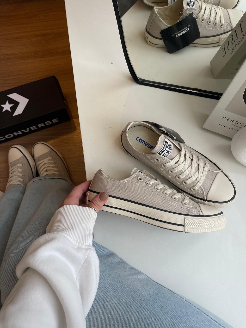 A tonalidade bege neutra confere um toque de elegância discreta e é incrivelmente fácil de combinar, garantindo que você se destaque com sofisticação em qualquer look. A silhueta de perfil baixo e o cabedal em lona resistente são características que tornaram o All Star um clássico atemporal, adaptável a uma infinidade de combinações.
