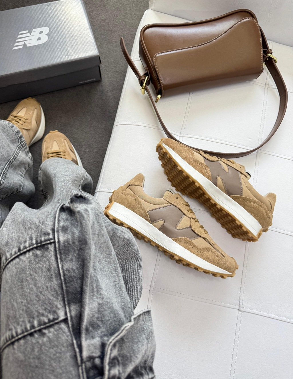 Com um cabedal que combina camurça suave e nylon nos tons de caramelo e bege, o 327 oferece uma textura rica e um visual fácil de combinar. O grande N assimétrico na lateral em tom de marrom confere um toque arrojado e único, enquanto a entressola angular em branco e o solado tratorado em borracha caramelo trazem durabilidade e um estilo retrô autêntico. A leveza e o ajuste confortável tornam-no versátil e ideal para o uso diário.