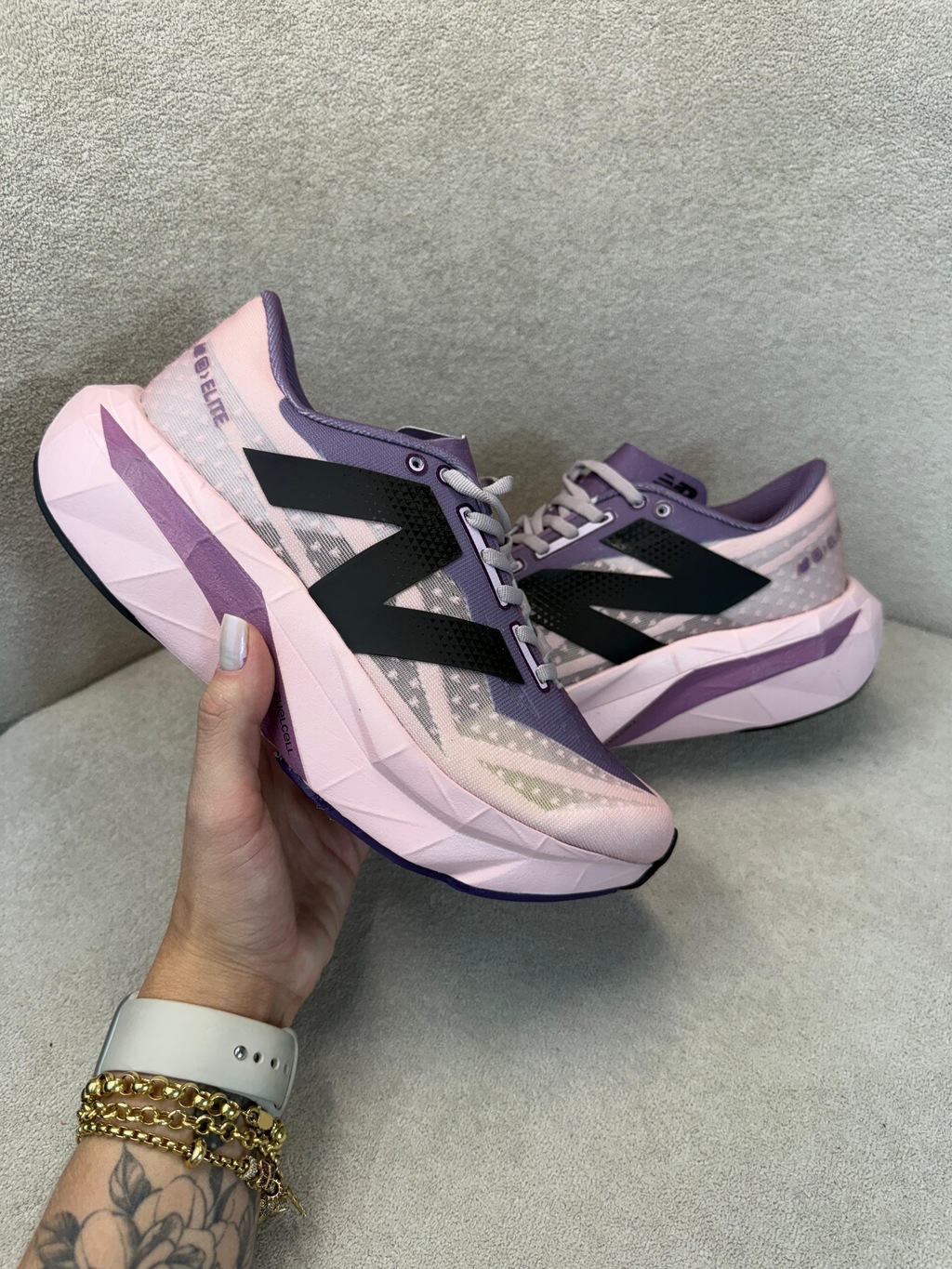 O Tênis New Balance FuelCell SC Elite v3 é a união da performance de elite com um estilo bold e moderno, perfeito para quem quer se destacar. Este tênis de corrida de alta performance eleva o estilo com uma combinação vibrante de rosa pastel e roxo/lilás que é tendência, mas sem abrir mão da versatilidade para o uso casual.